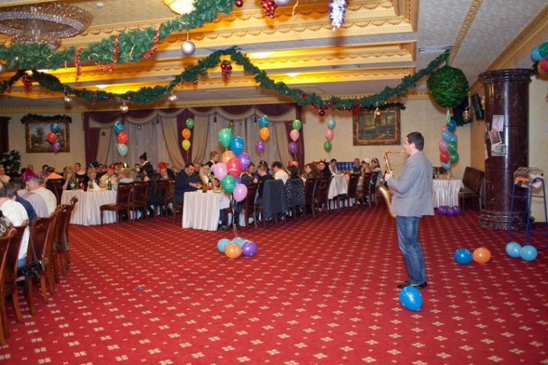 Вечер сопровождался веселыми конкурсами, а праздничная атмосфера поддерживалась с помощью приятной живой музыки и чудесной игры саксофониста.