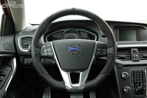 Для интерьера хэтчбека Volvo V40 ателье Heico Sportiv подготовило обновленное спортивное рулевое колесо, металлические педали и напольные коврики. Все детали имеют фирменную символику немецкой тюнинговой компании.