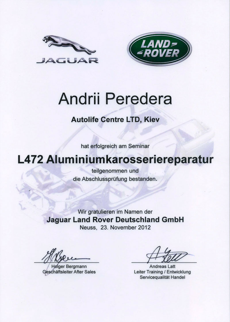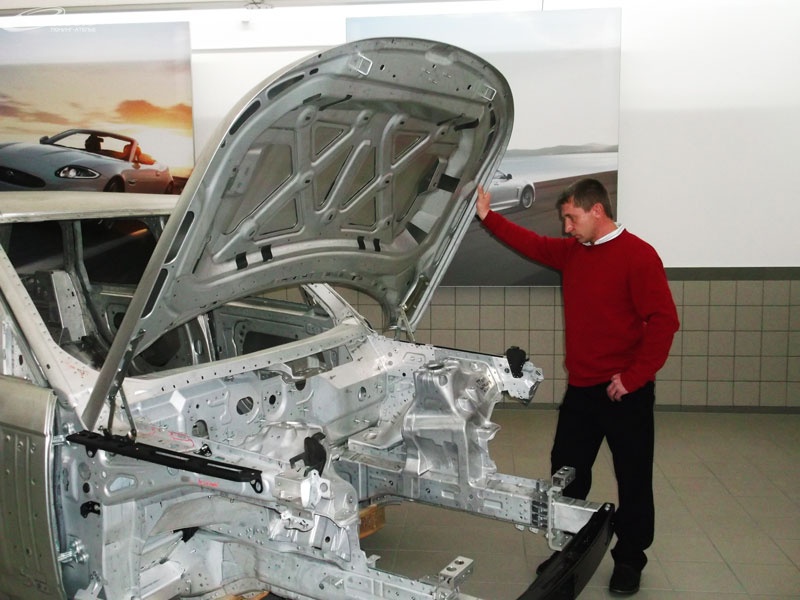 В связи с этим официальный пердсавитель «Jaguar Land Rover» в Германии, г. Нойс организовала и проведала обучающий тренинг по ремонту алюминиевого корпуса для автомобиля Range Rover.