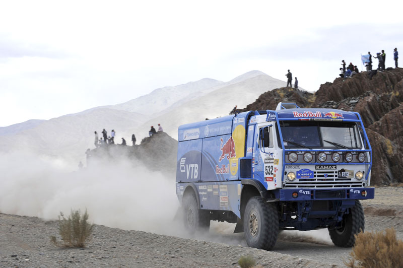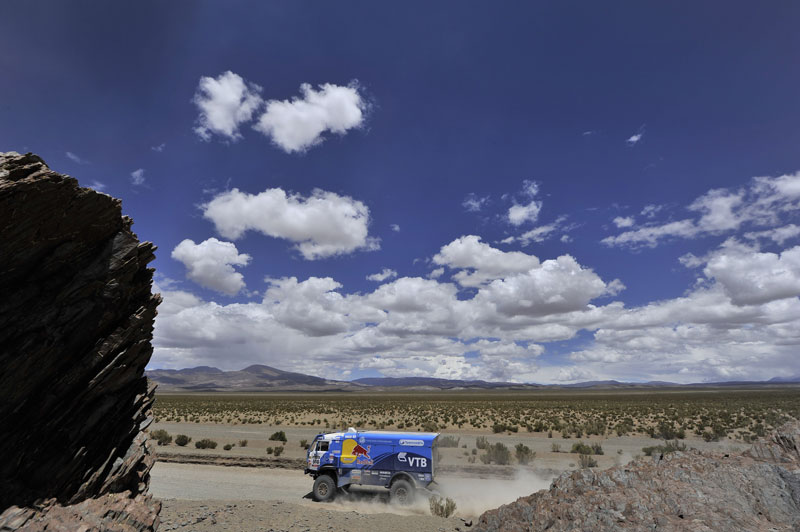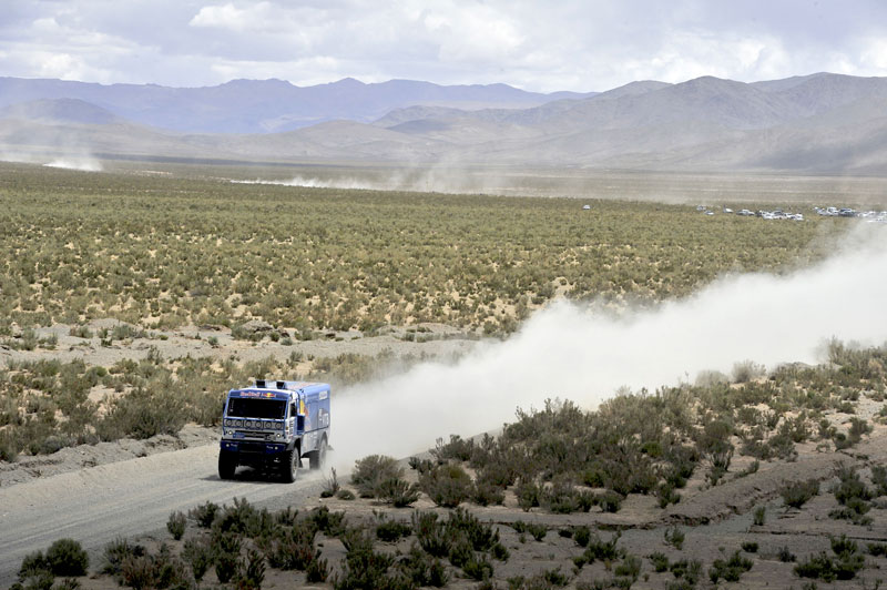 Но, давайте от гаучо аргентинских перейдем к гаучо дакаровским. Участникам грузового зачета старт с бивуака был дан раньше всех – в 04:15 утра, к тому же двигались они сегодня по своему собственному маршруту, отличному от спецучастка мотоциклистов и автомобилистов. Столь ранний подъем после тяжелого ремонта традиционного для дня отдыха был подслащен лишь тем фактом, что 293-километровый спецучасток для грузовиков был более чем в два раза короче, чем доп для остальных участников ралли.